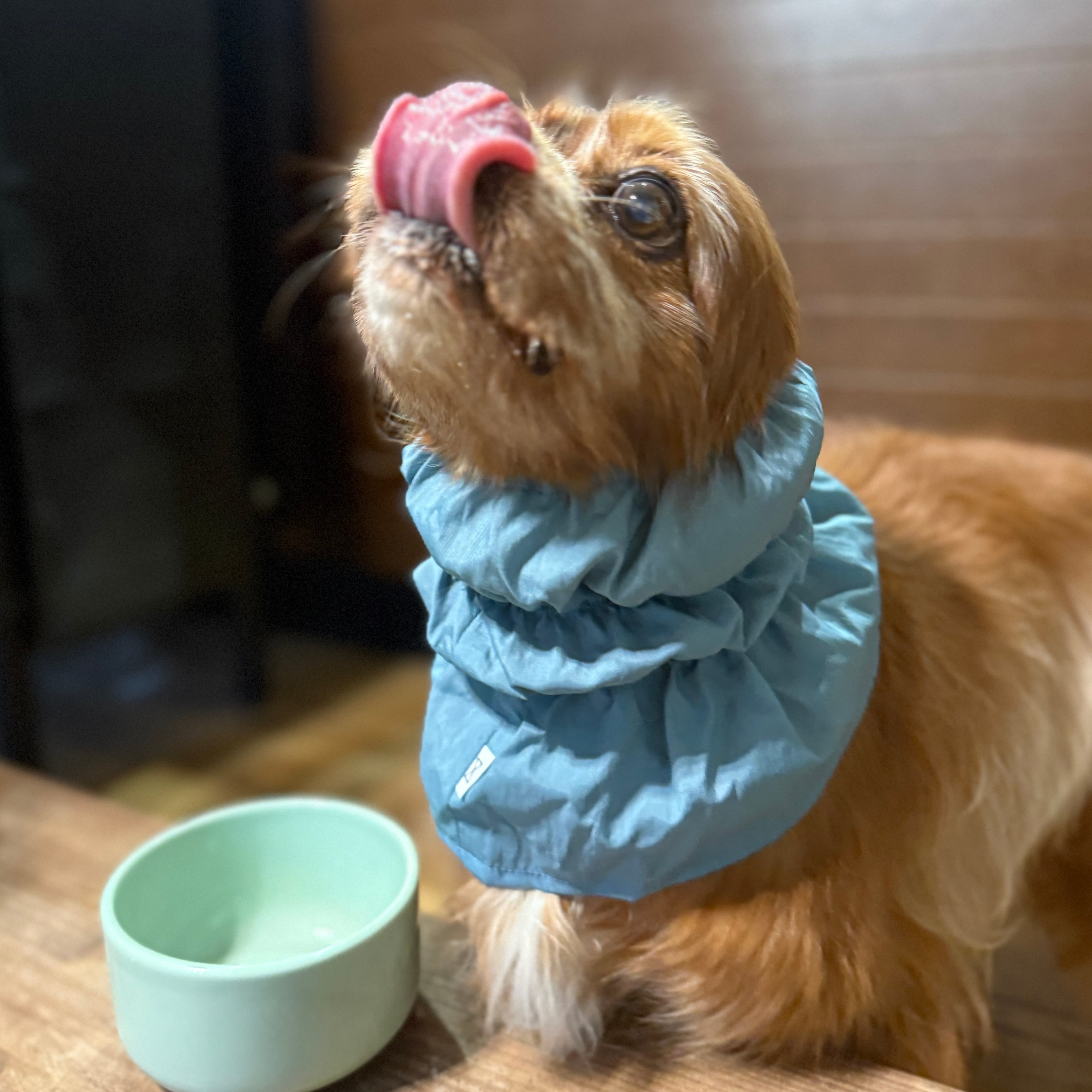 上手く食べれないシニアの子や、お食事で首周りが汚れる子にお食事用のスヌードをご用意しました!